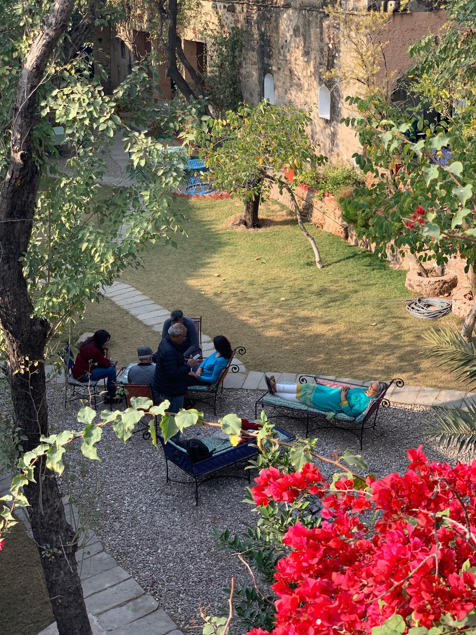 I stayed at the Hill Fort Kesroli located in Alwar, Rajasthan (which is a 3 hour drive from Delhi) for two nights with extended family. It’s a smaller-sized fort standing tall amidst hills and fields dating back to the 14th century with stunning views. Preserving the original structure and rooms, also known as “mahals”, each guest room at the Hill Fort Kesroli is different with stunning decor and perfect for up to 3 adults or a family of 4.