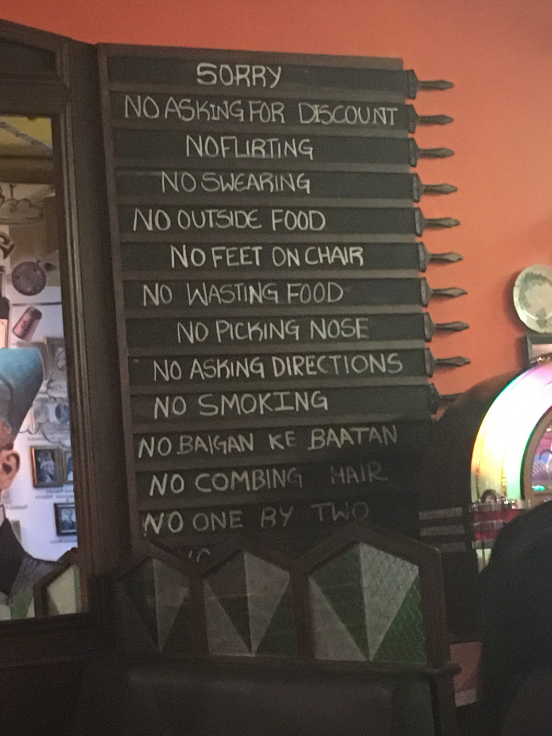 How can you not love a place with a name like this? This Bombay/Irani-themed restaurant serves up delicious Parsi food with a side of humor. Pay attention to the rules 😉
